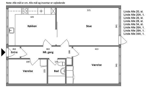 Linde Alle 20A, 26A, 28A, 34A. Etage/dør: 1.