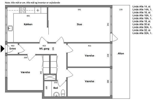 Linde Alle 14A, 16A, 18A, 30A, 32A. Etage/dør: 1.